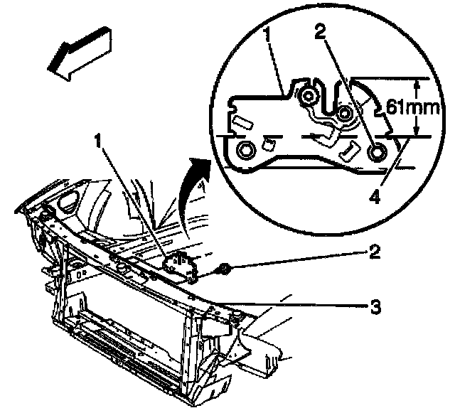 4. Remove the hood latch (1).