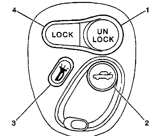 2. Press and hold the transmitter LOCK (4) and UNLOCK (1) buttons simultaneously for 8 seconds.