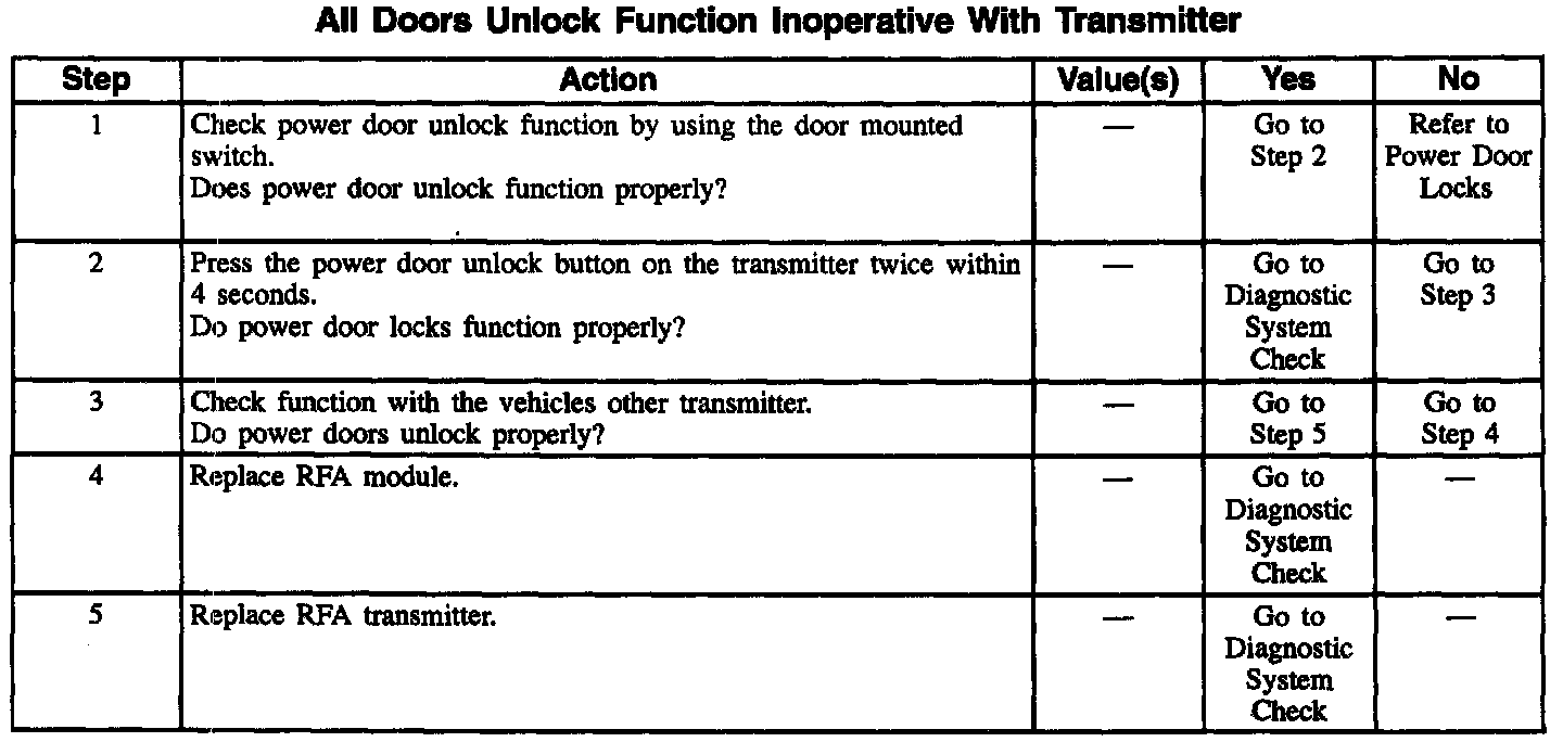 All Doors Unlock Function Inoperative With Transmitter
