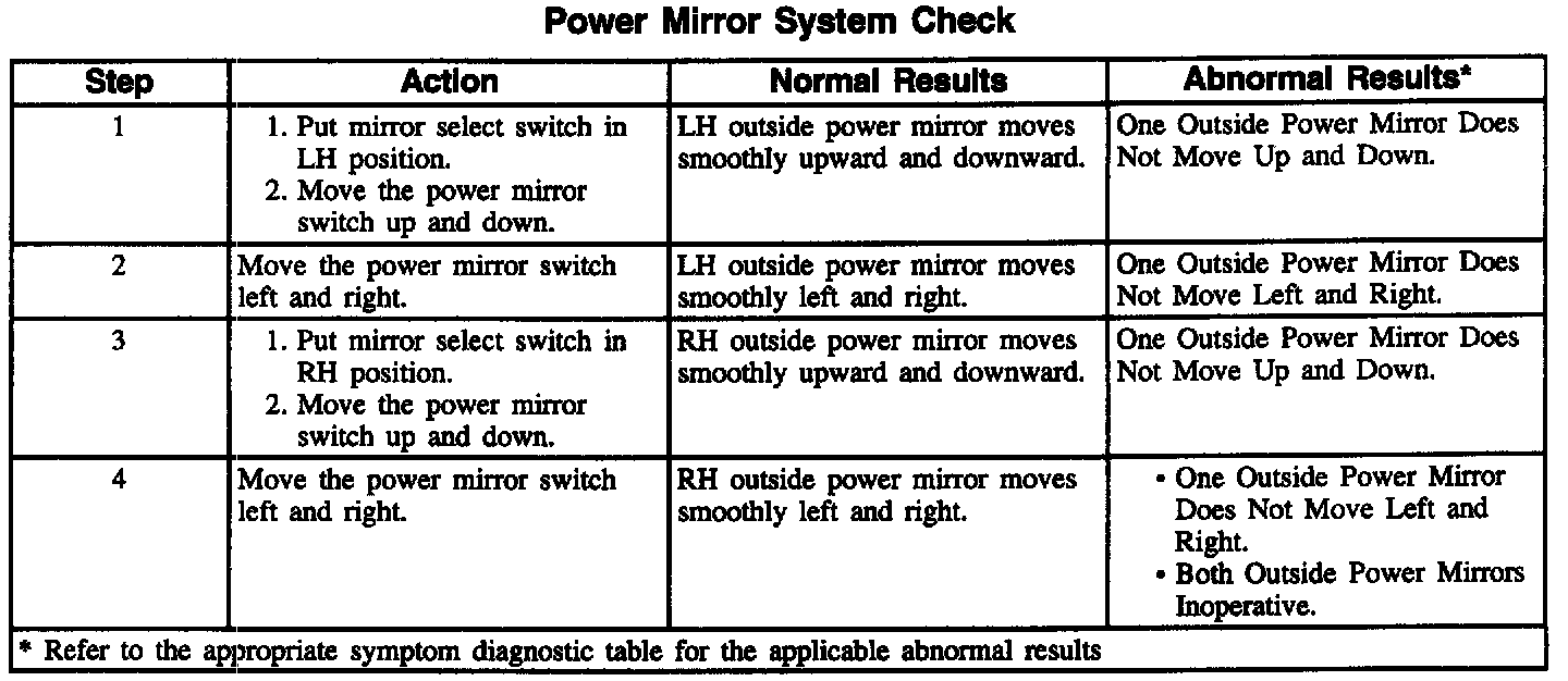 Power Mirror System Check: