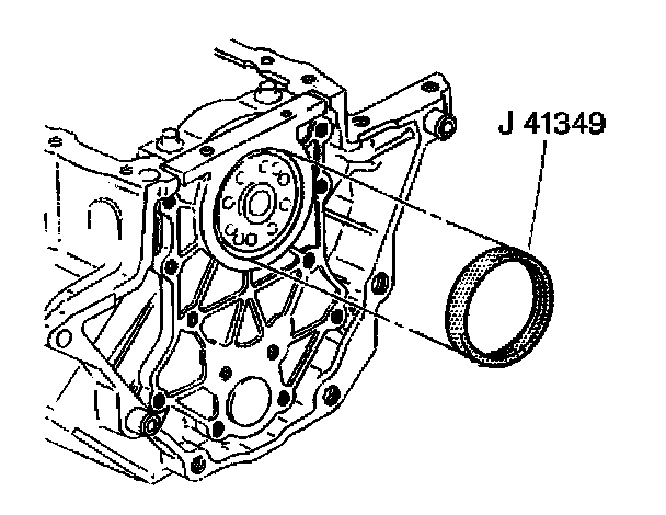 7. Install J41349 over the crankshaft. Twist the tool to aid in sliding the tool over the crankshaft.