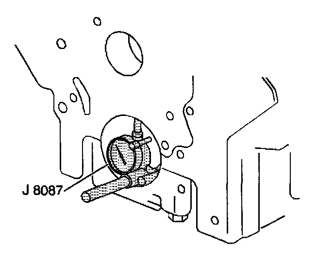 12. Inspect the crankshaft main bearing bores. Use J8087 to measure the bearing bore concentricity and alignment at the following locations: