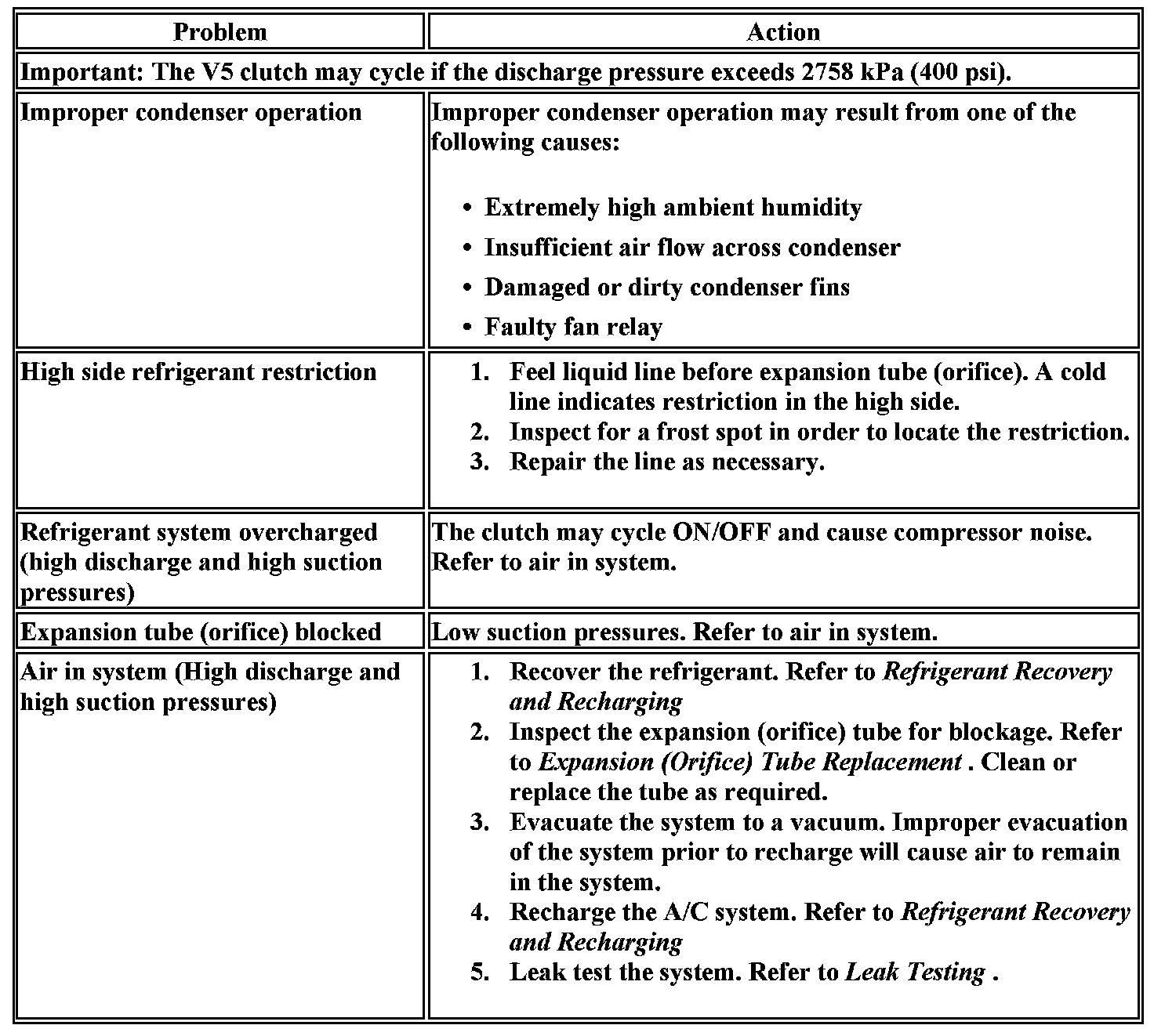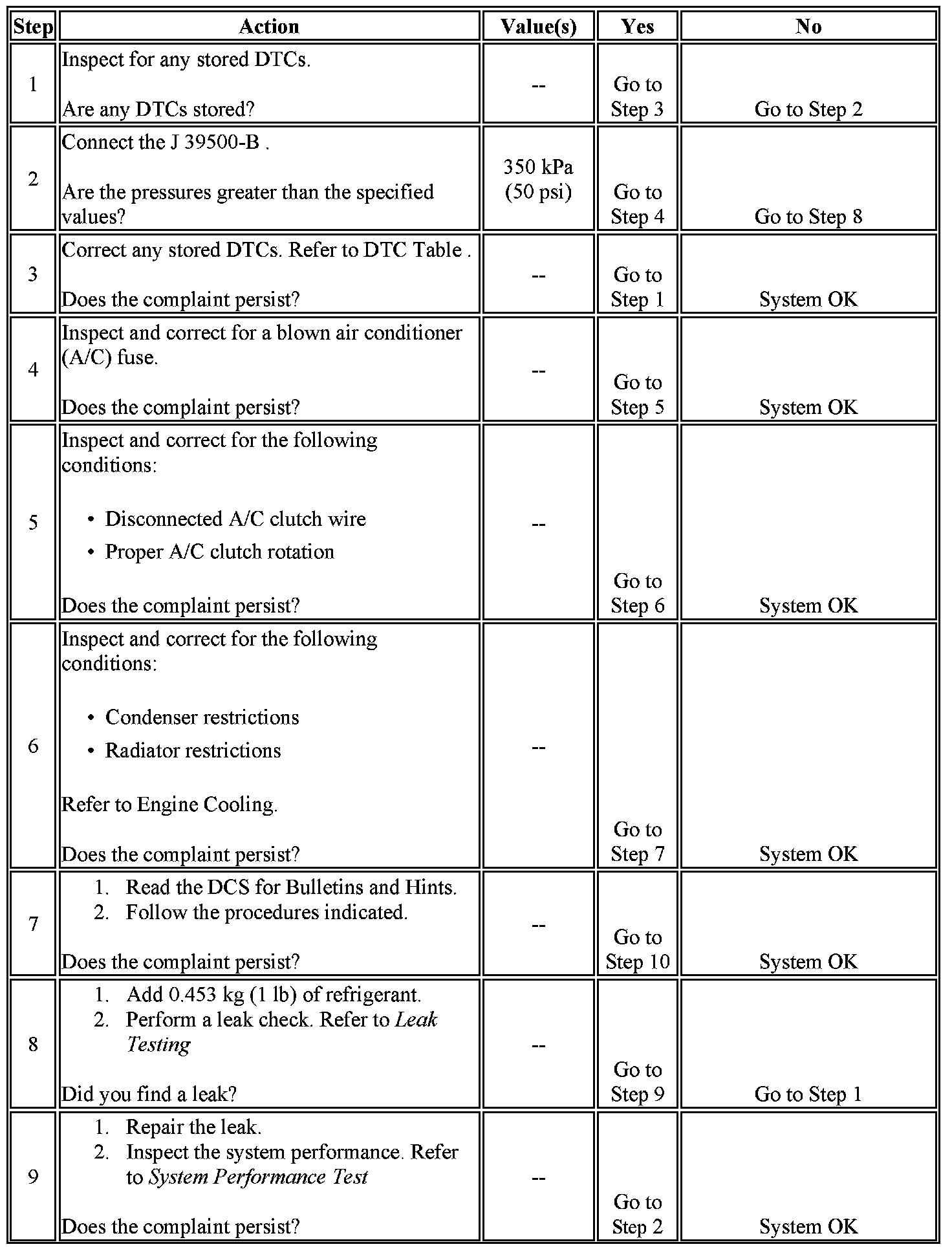 Cooling Insufficient - Air Conditioning (A/C) Inoperative