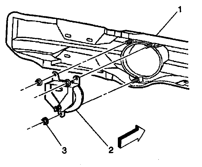 3. Remove the nuts (3) that retain the fog lamp (2) to the impact bar (1).
