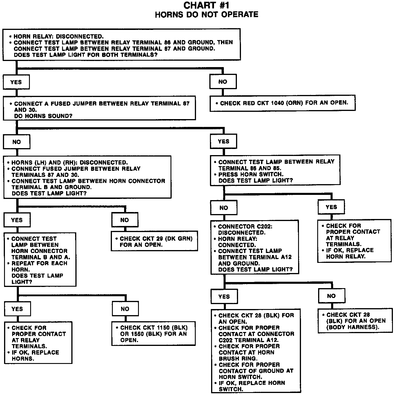 Chart #1 Horns Do Not Operate: