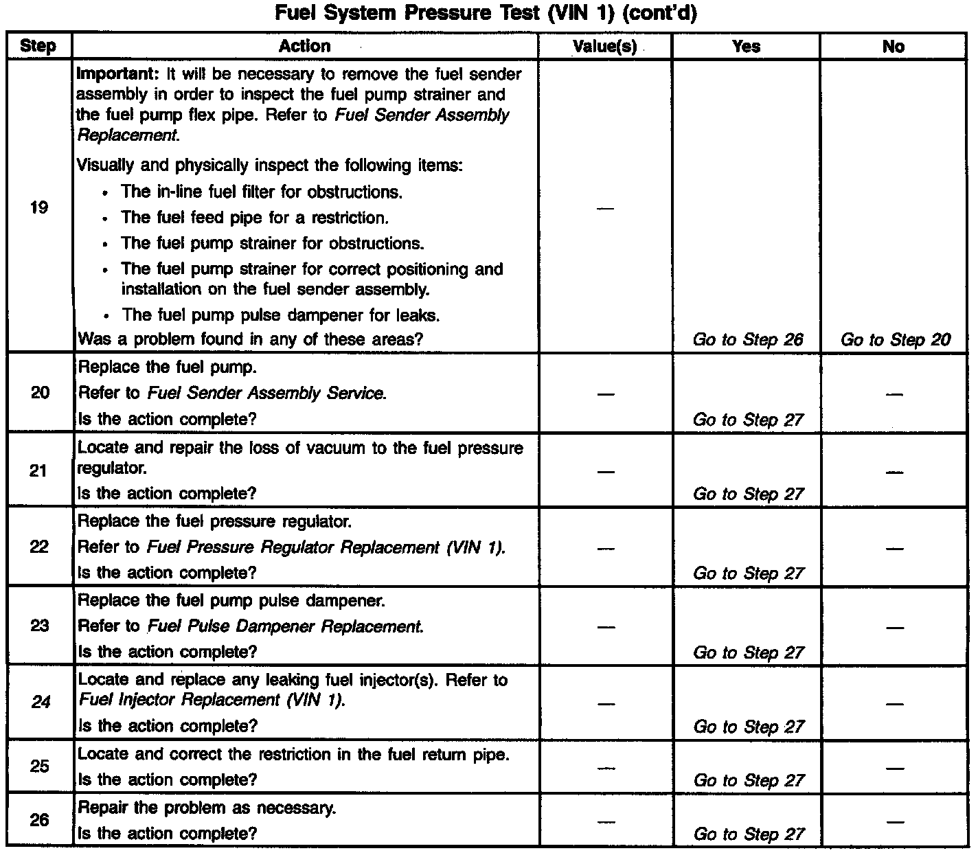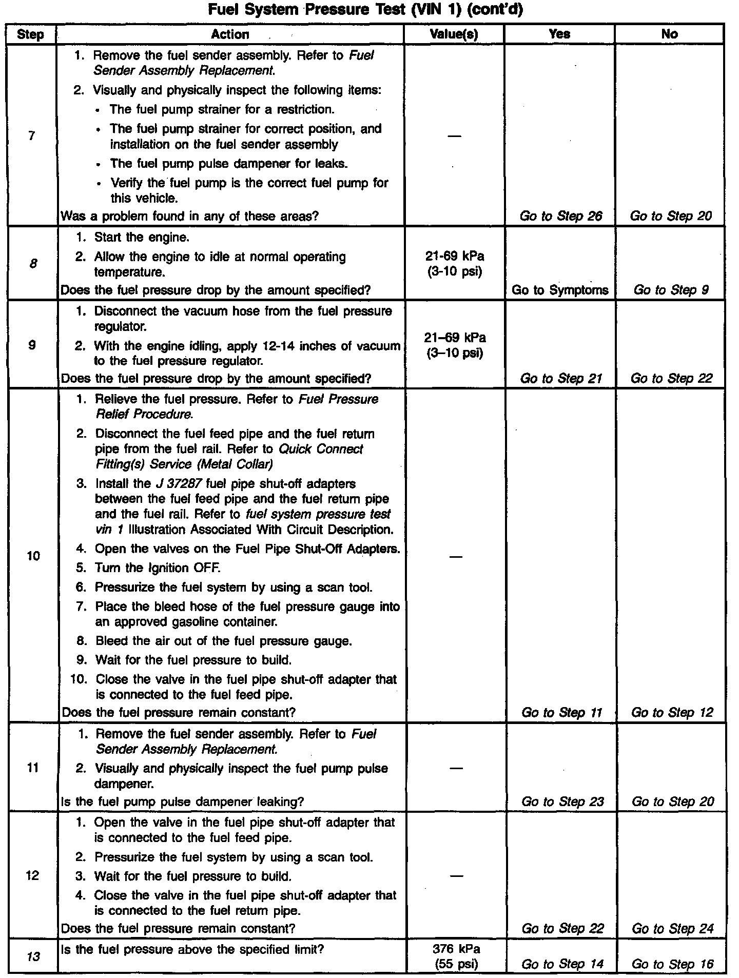 14. This test determines if the high fuel pressure is due to a restricted fuel return pipe or if the high fuel pressure is due to a faulty fuel pressure regulator.