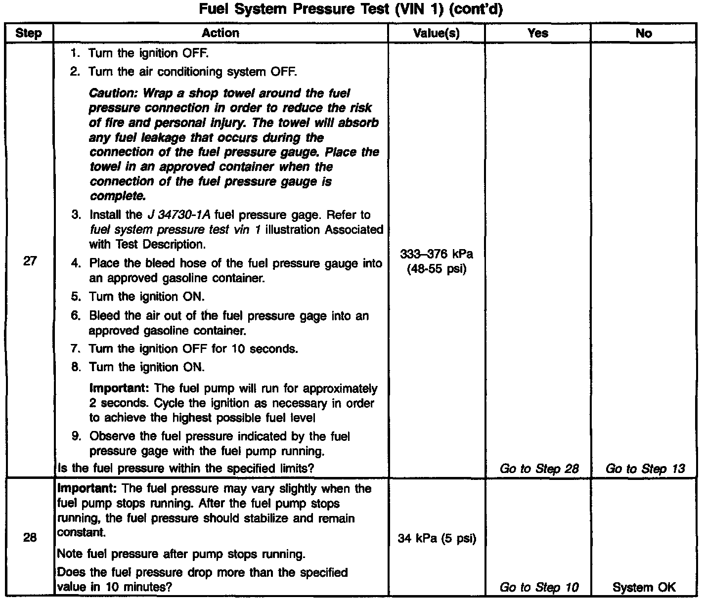 System Diagnosis - Fuel System Pressure Test