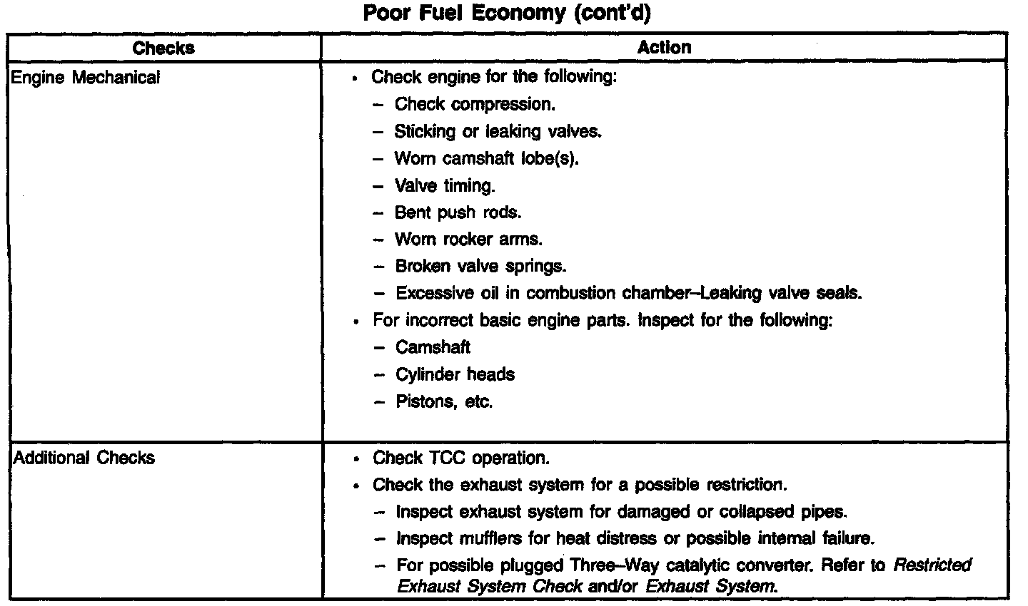 Poor Fuel Economy