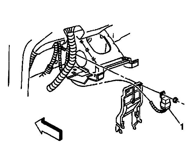 1. Install the starter enable relay connector. Position the relay (1) over the stud.