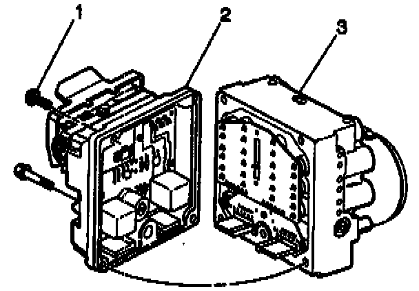 REMOVAL PROCEDURECaution: Do not pry Electronic Brake Control Module/Electronic Brake Traction Control Module (EBCM/EBTCM). Be careful not to damage seal (If rousing module). It seal is damaged during removal, repair damaged area using GM silicone sealer or replace EBCM/EBTCM.