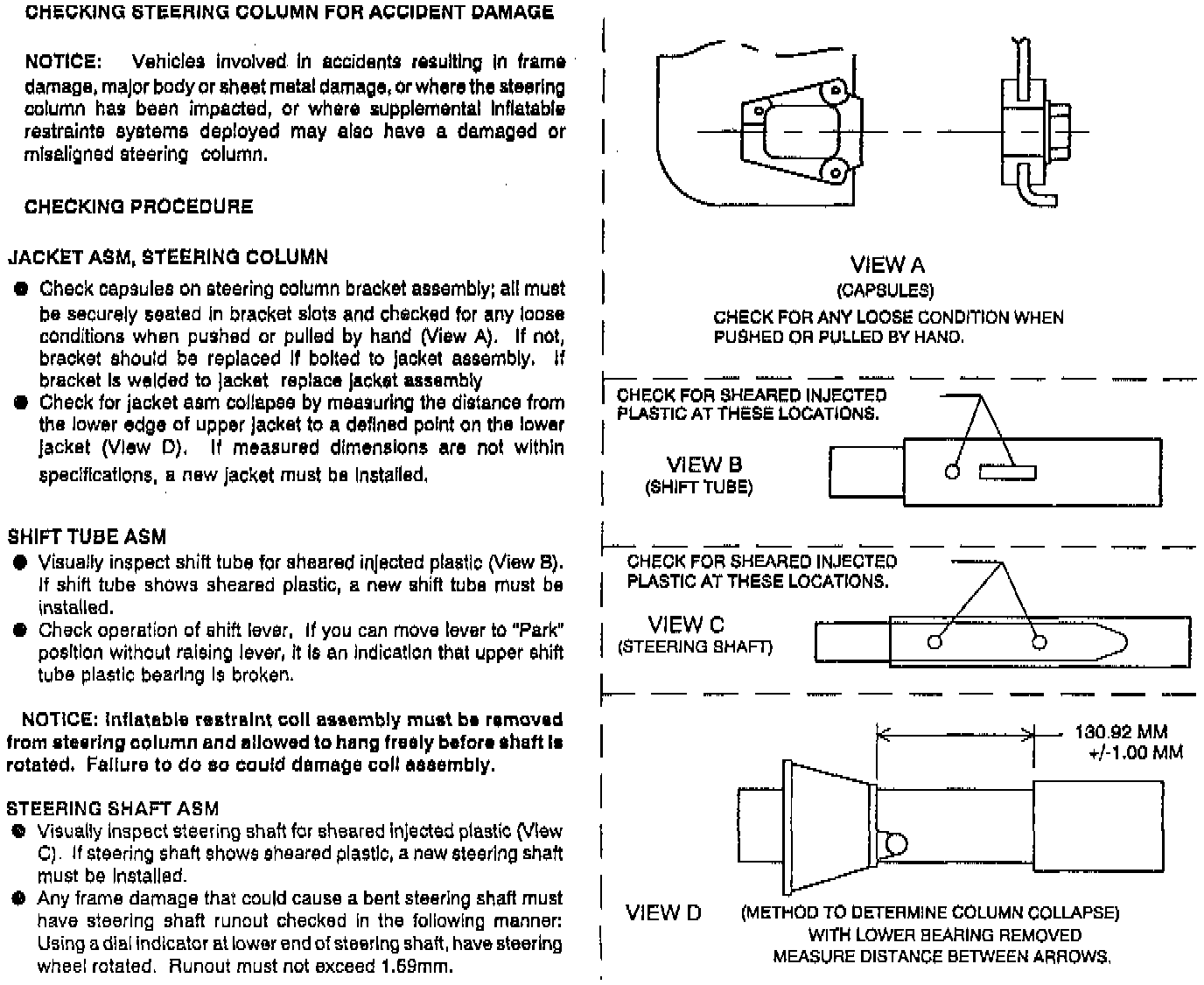 ^ Inspect the steering shaft assembly (55) for accident damage.