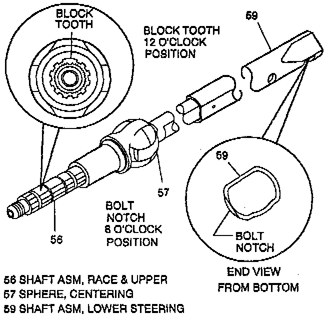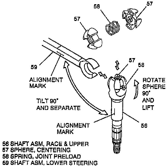 c. Upper shaft assembly (56) to lower steering shaft assembly (59).
