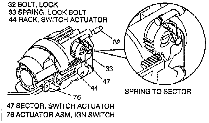 a. Position column housing (30) and align switch actuator rack (44) with pin on end of ignition switch actuator assembly (76).