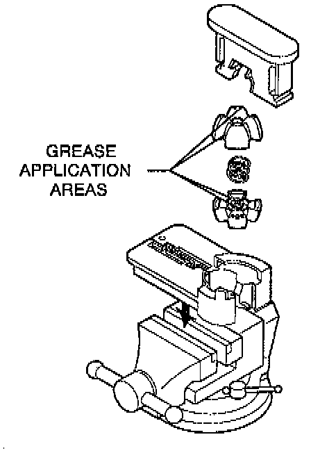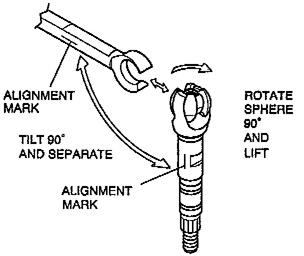 4. Grease the sphere with lithium grease. Grease the lower half of the sphere in the upper shaft assembly engagement areas. Grease the upper half of the sphere in the shaft engagement areas opposite to the greased areas of the lower half of the sphere.