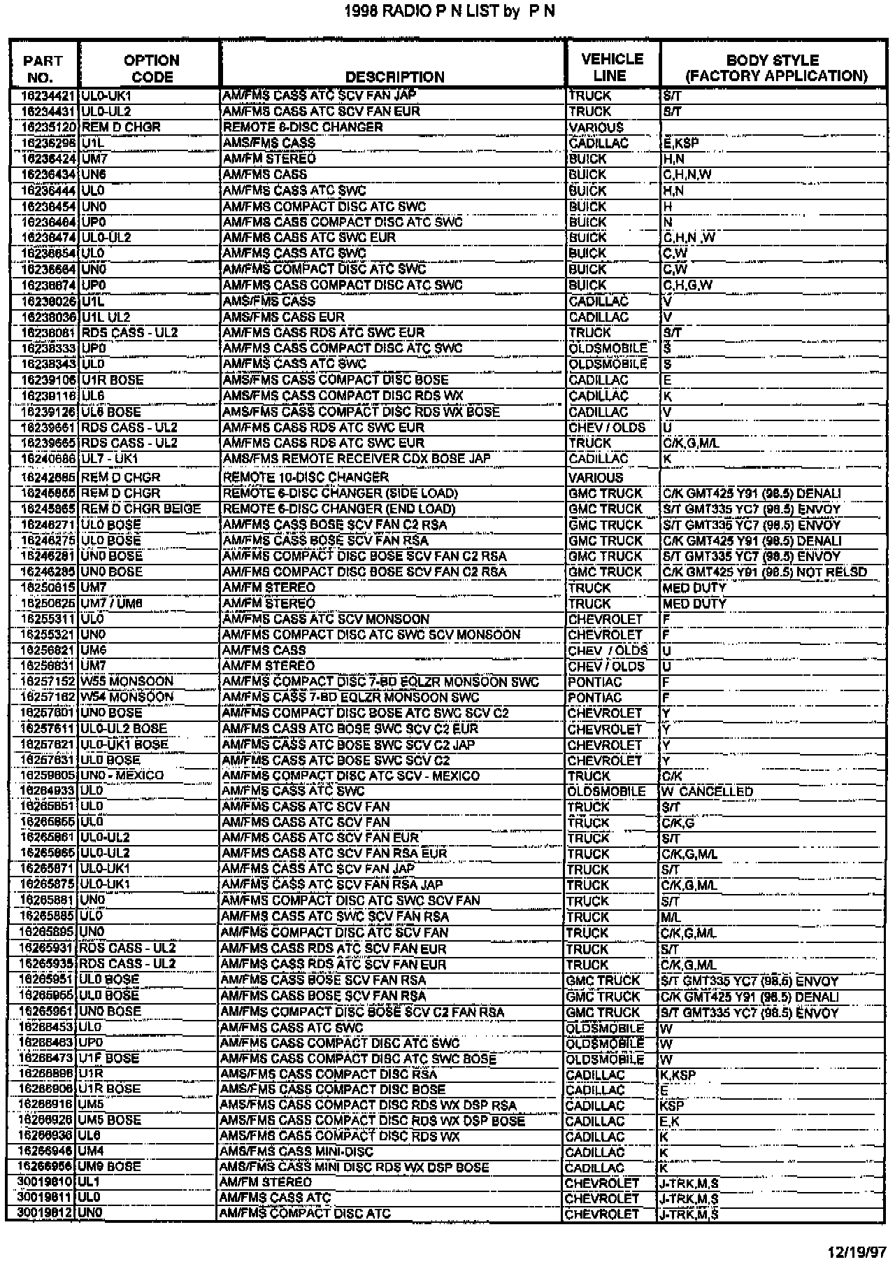 All 1998 Passenger Cars and Trucks (Excluding Saturn)