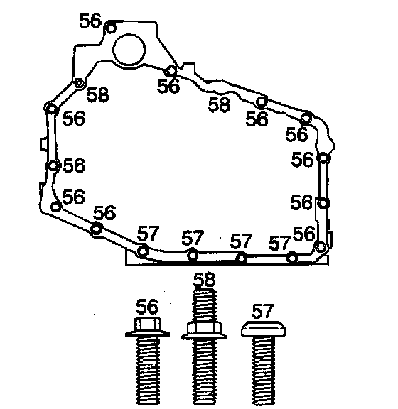 ^ Tighten the case side cover bolts (56-58) to 25 Nm (18 ft. lbs.).