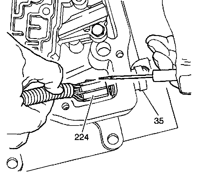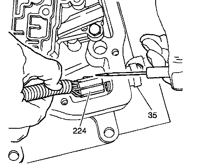 2. Disconnect the wiring harness assembly (224) from the electrical connector (35) in the case.