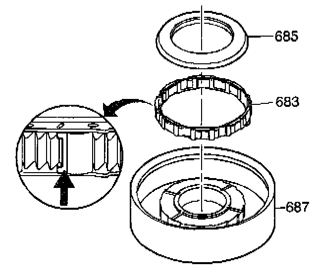 ^ A damaged or worn 1-2 clutch roller assembly (683)