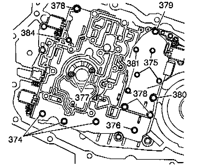 1. Remove the indicated control valve body bolts (374-381, 384).