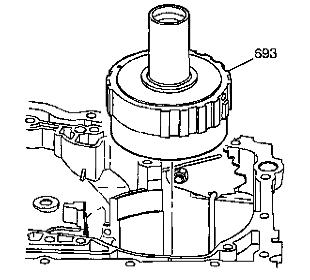 3. Lift the differential carrier internal gear assembly (693) out of the case by depressing the park pawl assembly in order to clear the case.