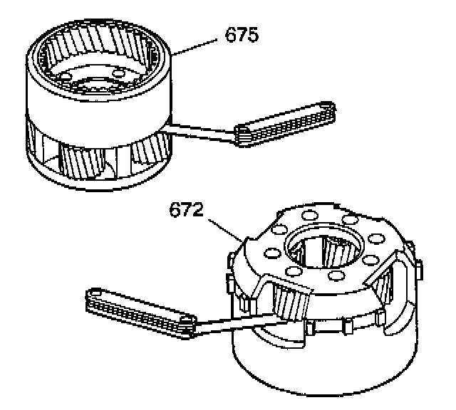 1. Use feeler gages in order to check for excessive pinion gear end play in the input carrier assembly (672) and in the reaction carrier assembly (675).