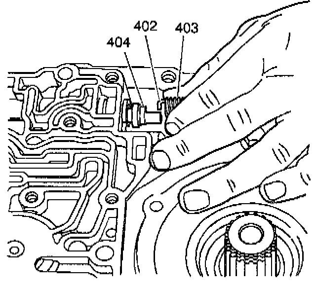 3. Pull back the manual valve spring (403) and connect the manual valve link (402) to the manual valve (404).