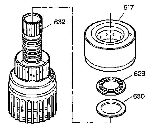 8. Lift the second clutch housing assembly (617) off of the input clutch housing.