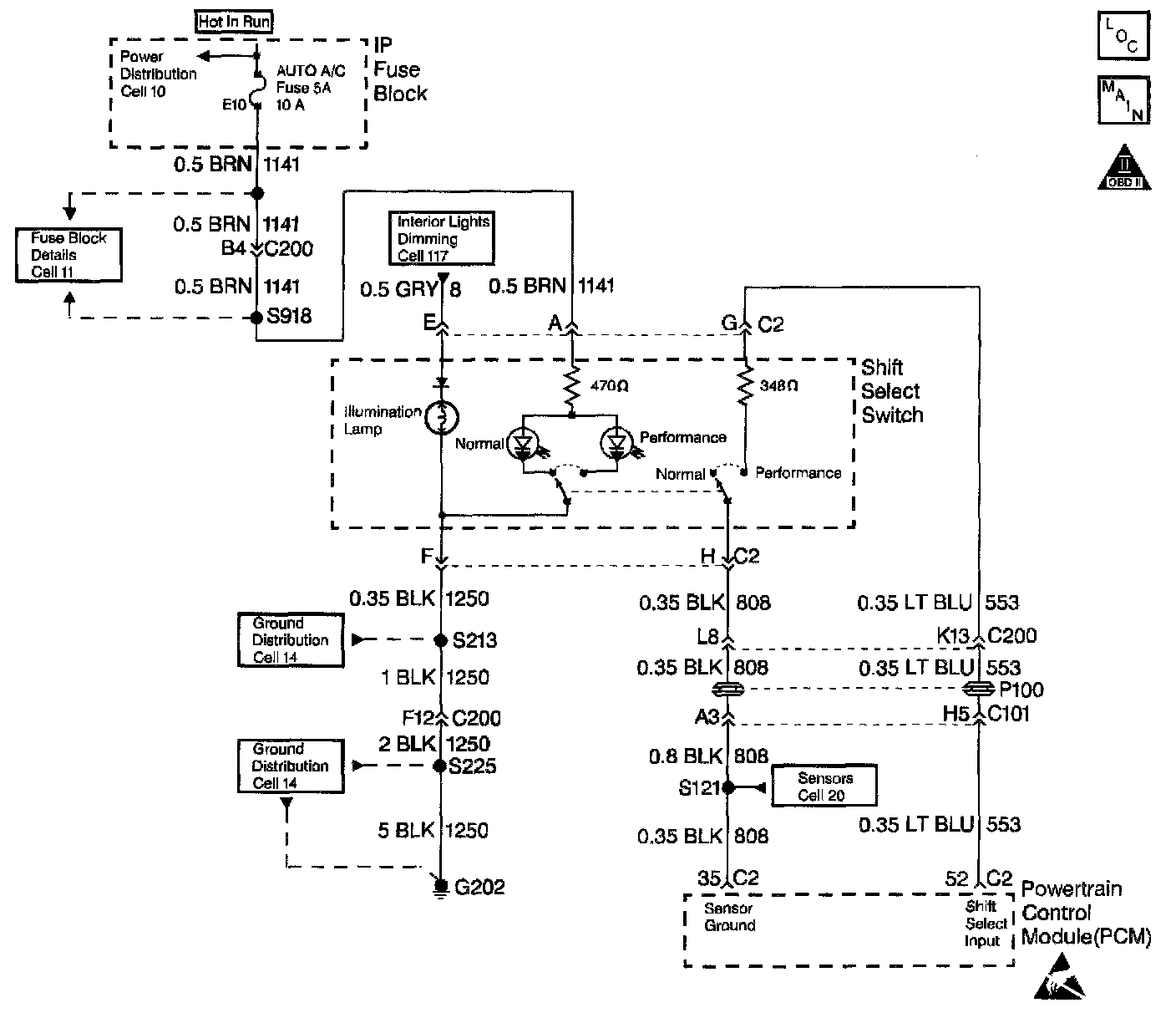 The Powertrain Control Module (PCM) provides input voltage to the Driver Select Shift Switch on circuit 553. The PCM grounds the switch on circuit 808.