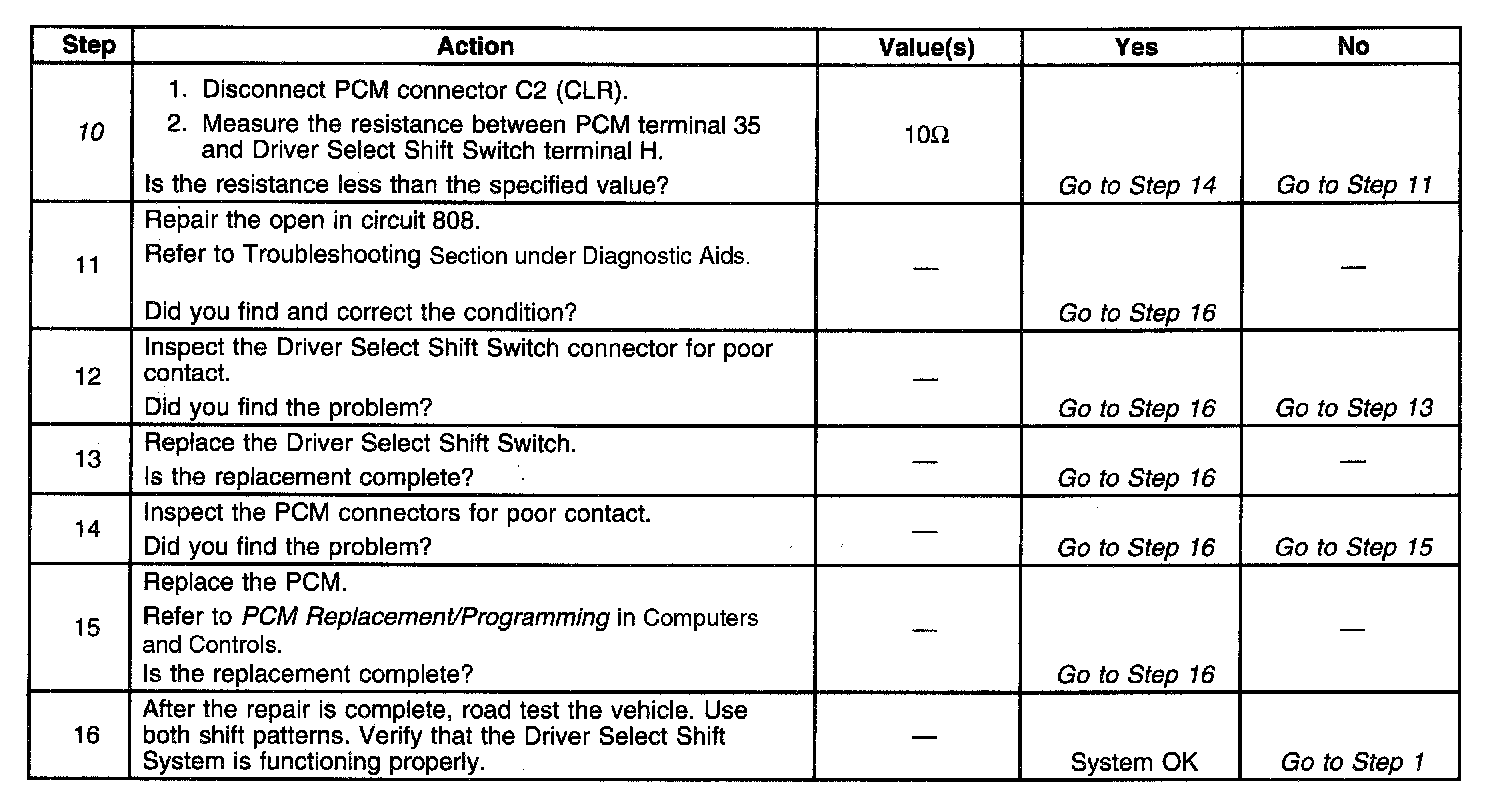 9. This step verifies that the Driver Select Shift Switch is functioning properly,
