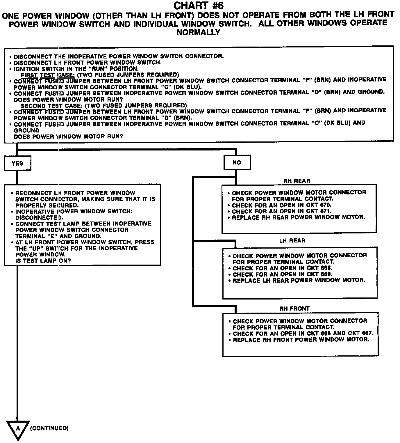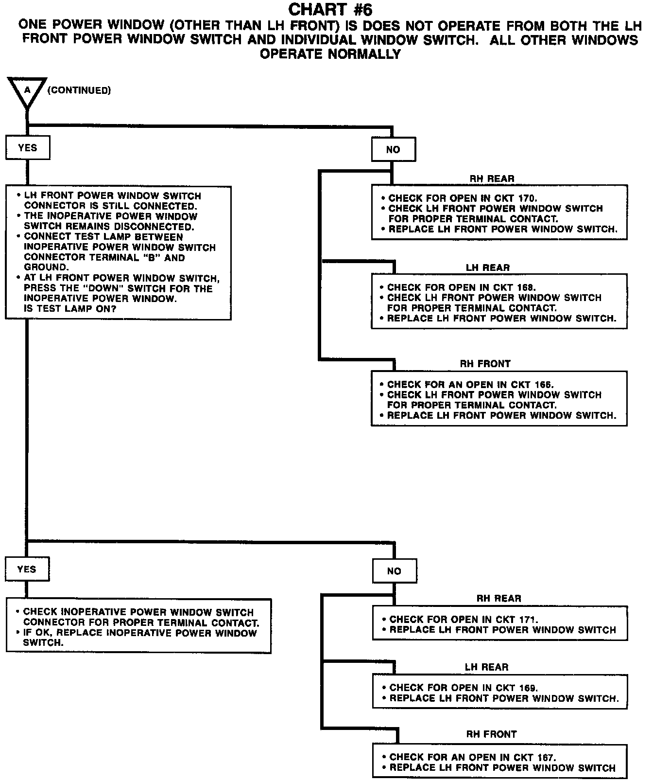 Chart #6 One Power Window (Other Than LH Front) Does Not Operate (Part 1 Of 2):