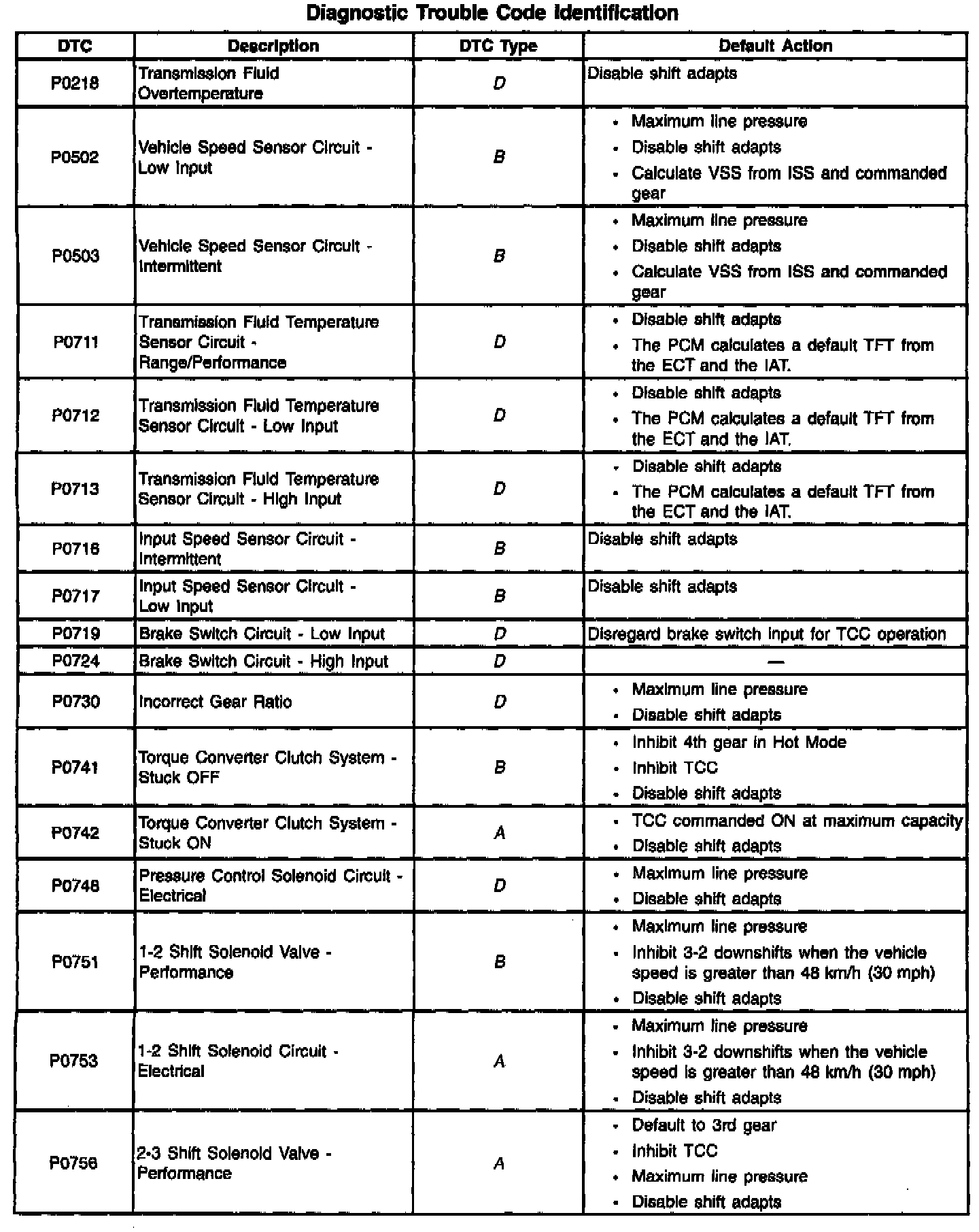Diagnostic Trouble Code Descriptions