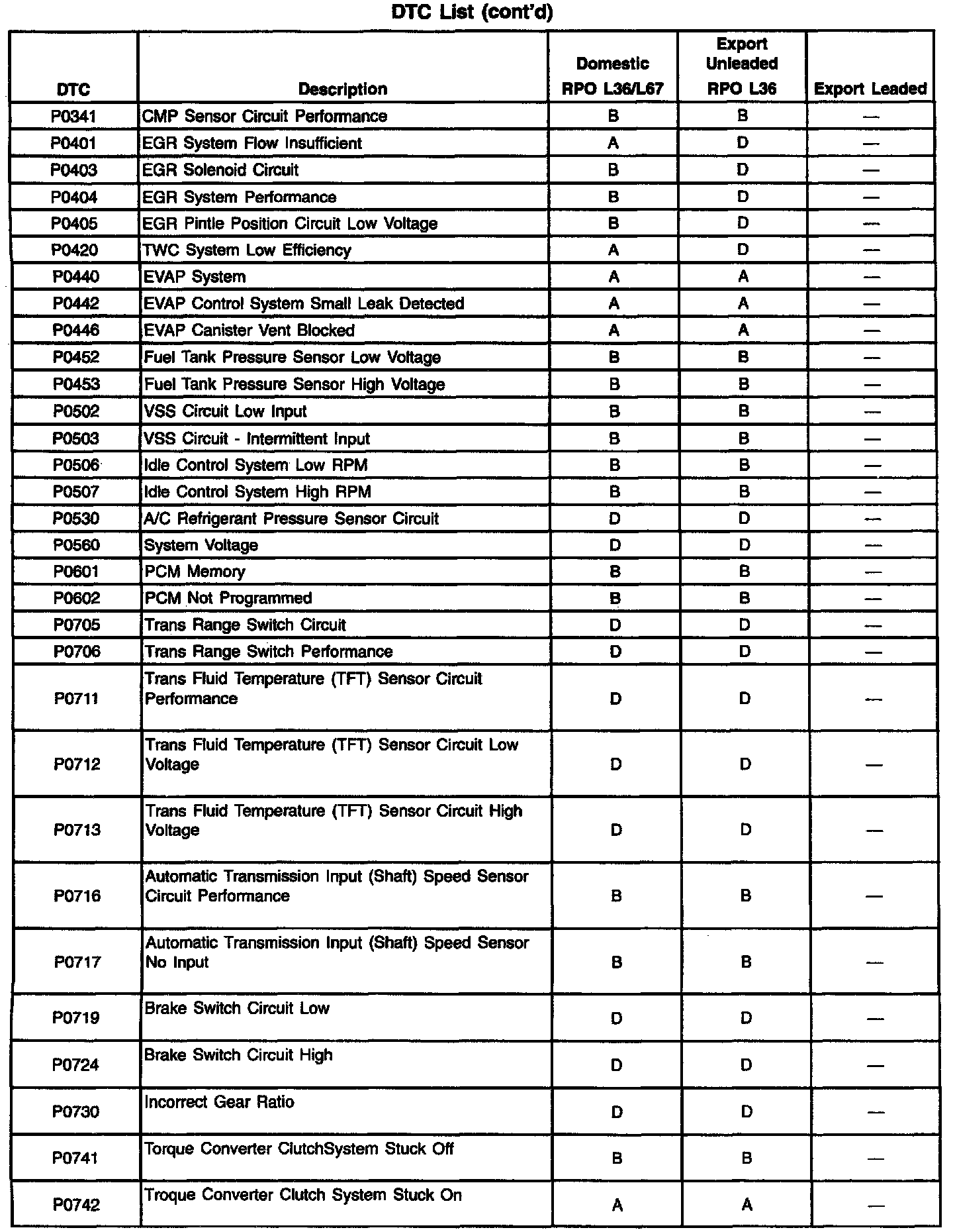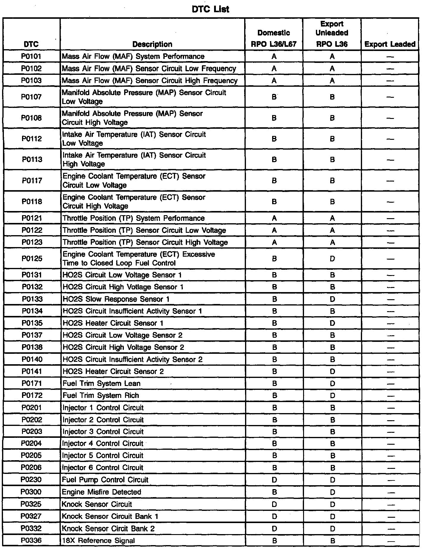 A L L Diagnostic Trouble Codes ( DTC )