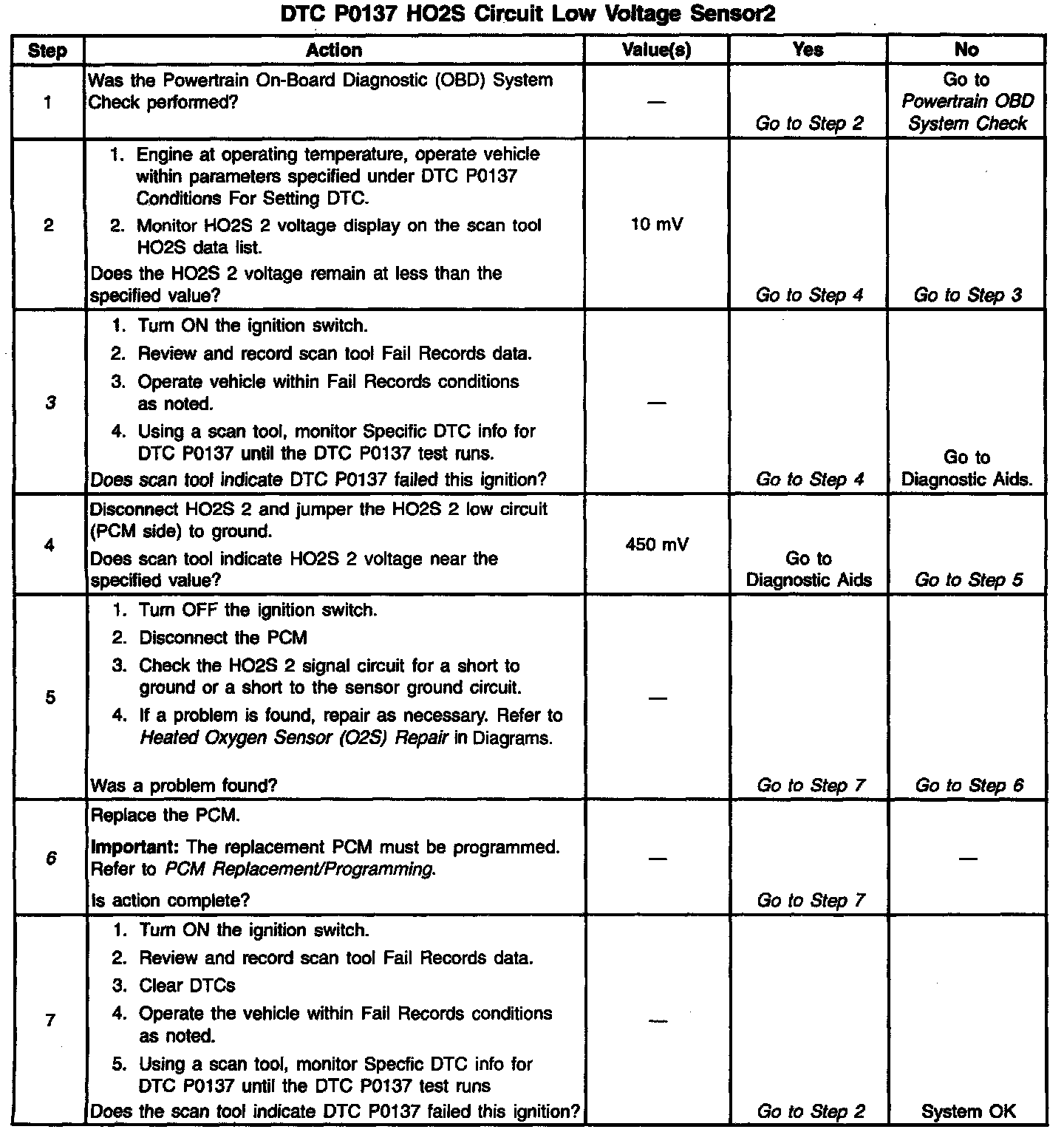 ^ Fuel pressure. A condition which causes a lean exhaust can cause DTC P0137 to set. The system will go lean if pressure is too low. The PCM can compensate for some decrease. However, if fuel pressure is too low, a DTC P0137 may be set.