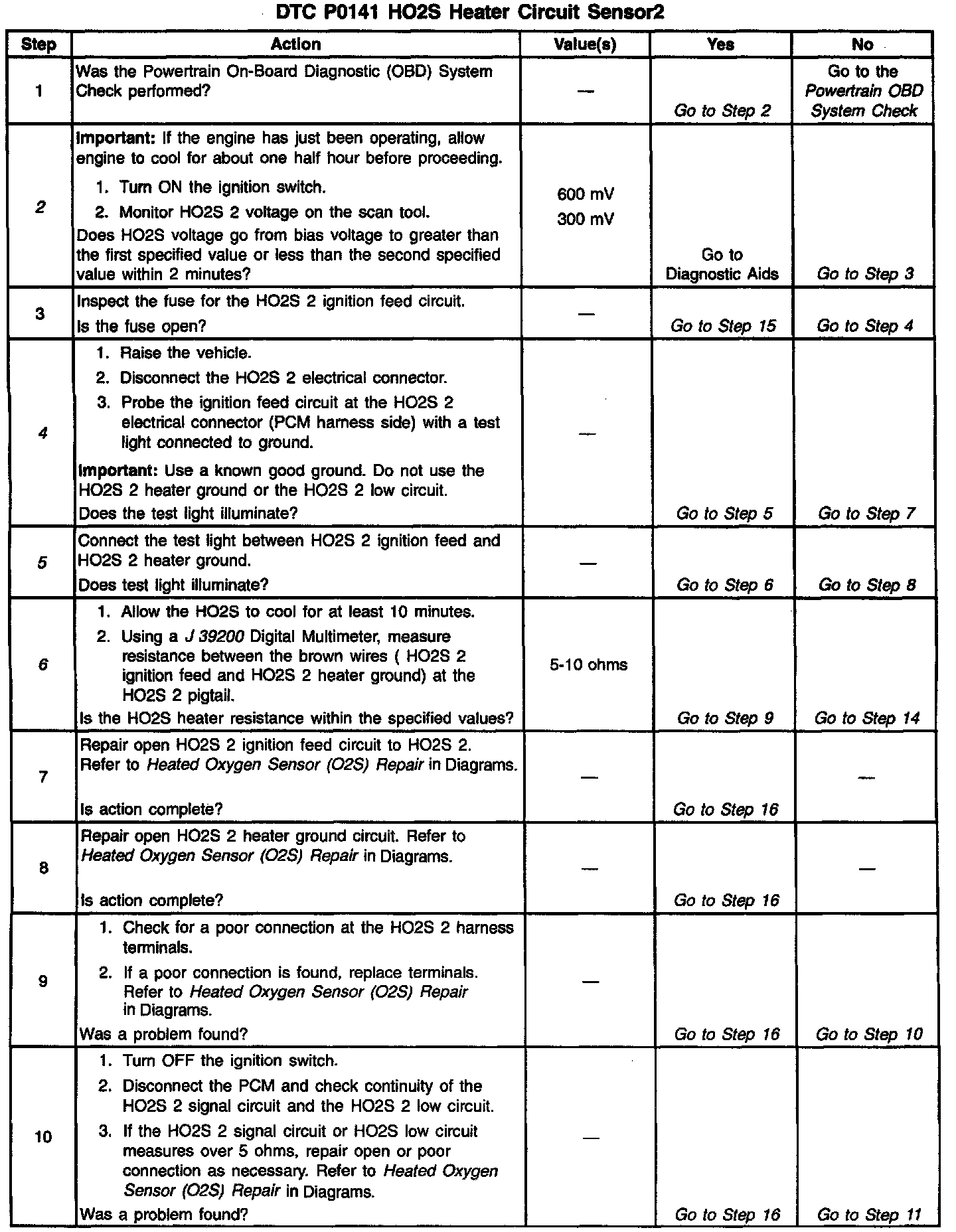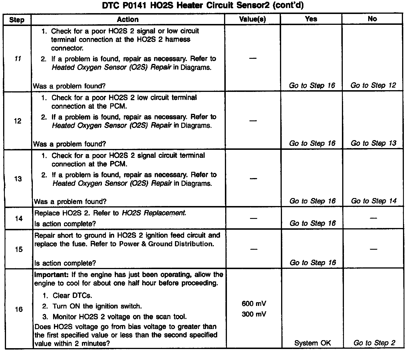 11. An open HO2S signal or low circuit can cause the DTC to set with a good HO2S. Check the HO2S signal and the HO2S low circuits before replacing the sensor.