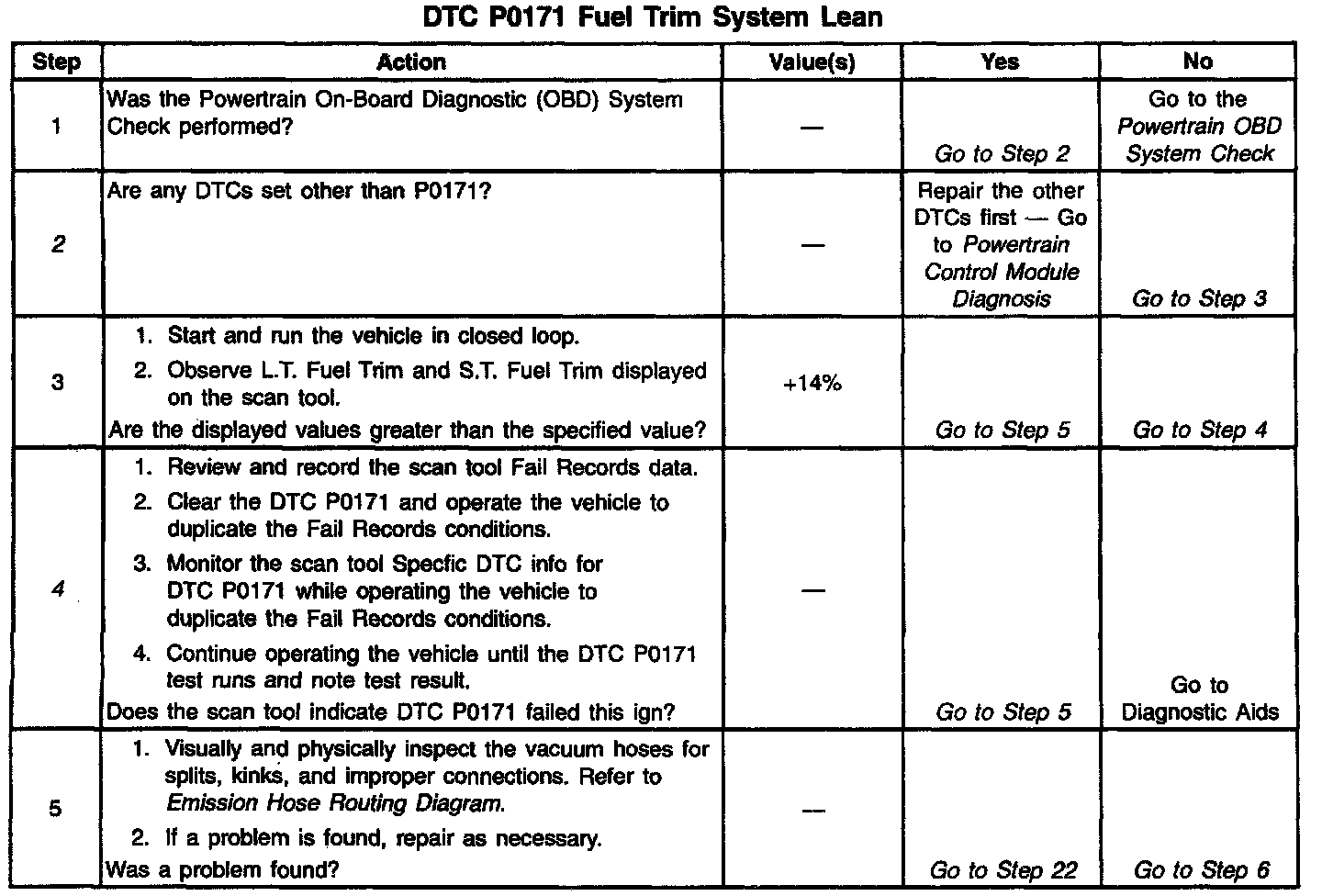 ^ Fuel pressure: The system will go lean if pressure is too low. The PCM can compensate for some decrease. However, if fuel pressure is too low, a DTC P0171 may be set.