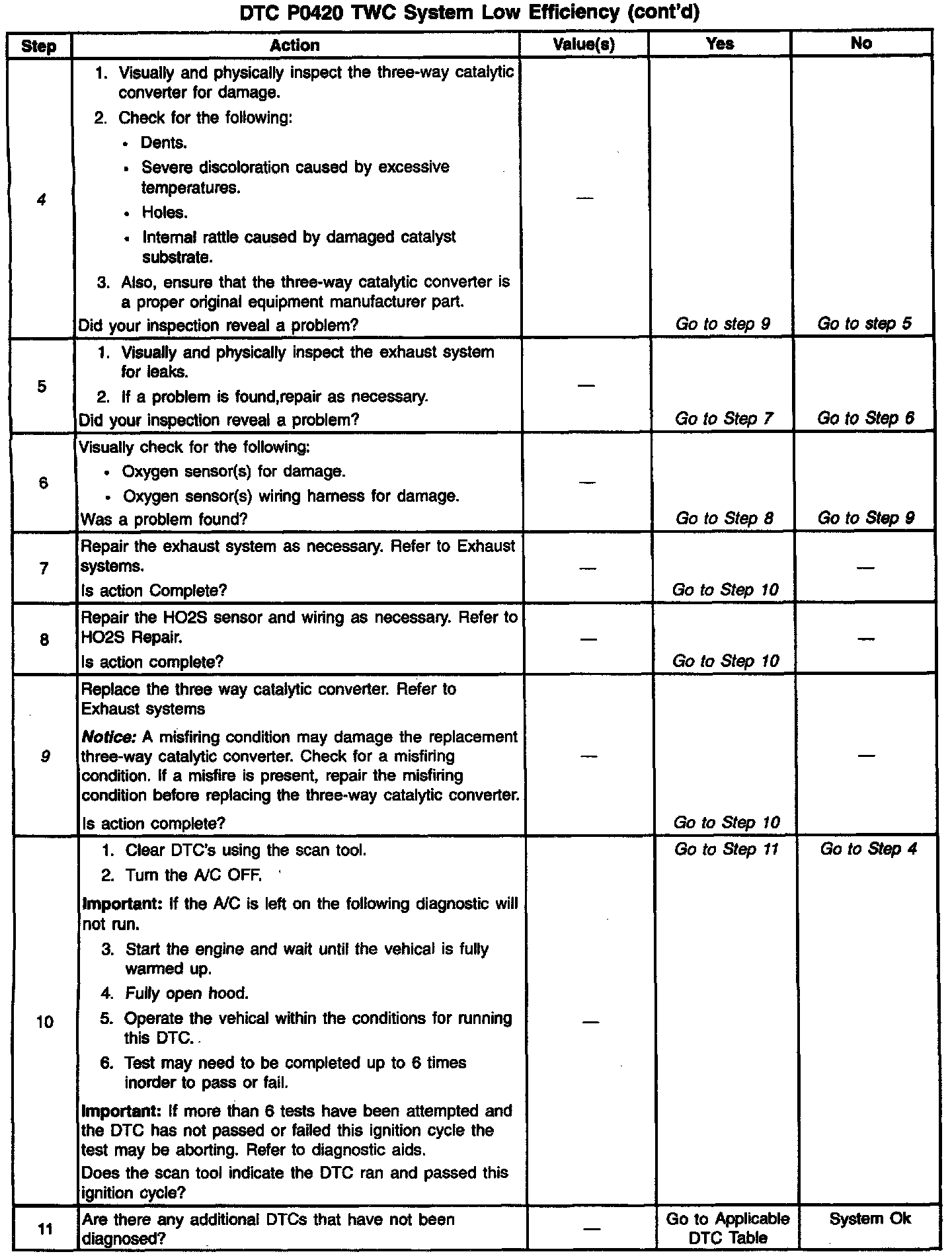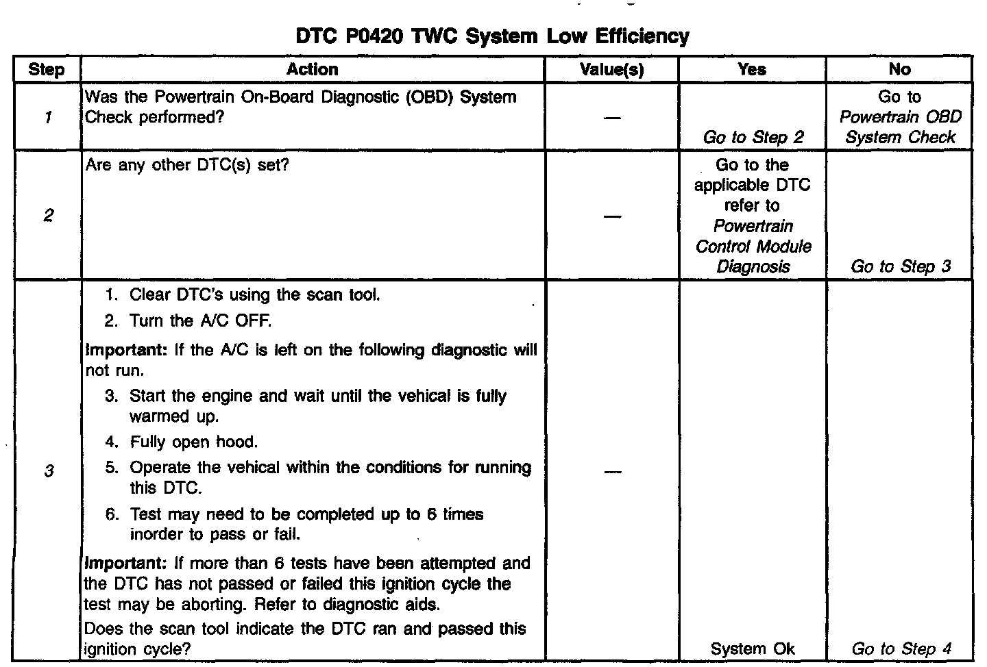 4. This step includes checks for conditions that can cause the three-way converter to appear degraded. Repair any problems found before proceeding with this table.
