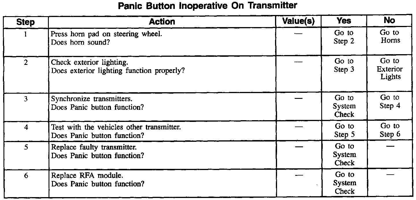 Panic Button Inoperative On Transmitter: