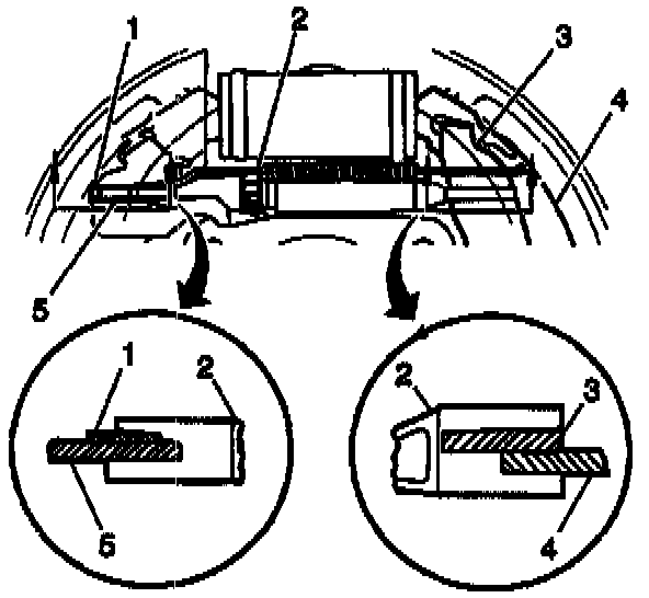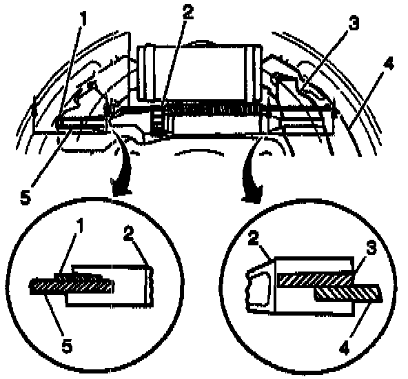 ^ The arm of the adjuster actuator rests freely on the star wheel teeth of the adjuster screw, not trapped under the teeth in a downward angle