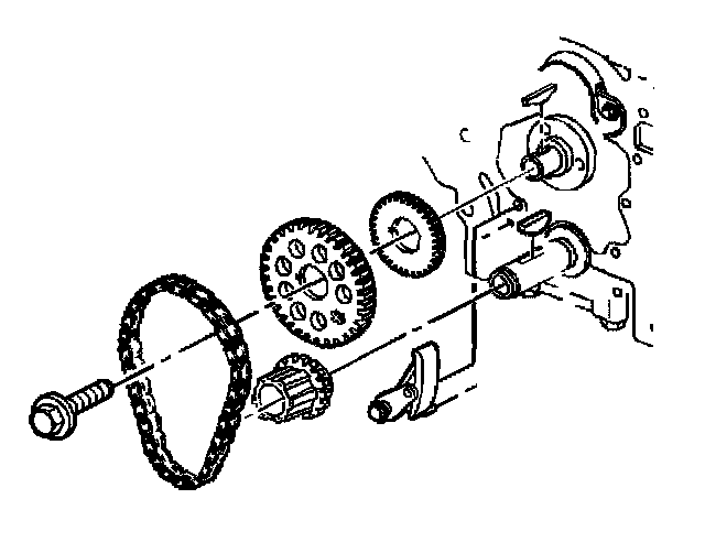 3. Assemble the timing chain on the sprockets with the timing marks in their closest together position.