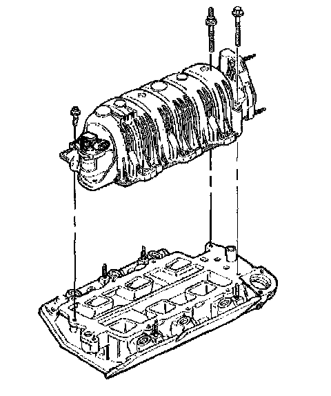 NOTICE: The two bolts which fasten the lower intake manifold to the cylinder head are accessible only after the upper intake is removed. The bolts are located in the right front and left rear corners of the lower intake manifold. Remove the upper intake manifold to service the lower intake.