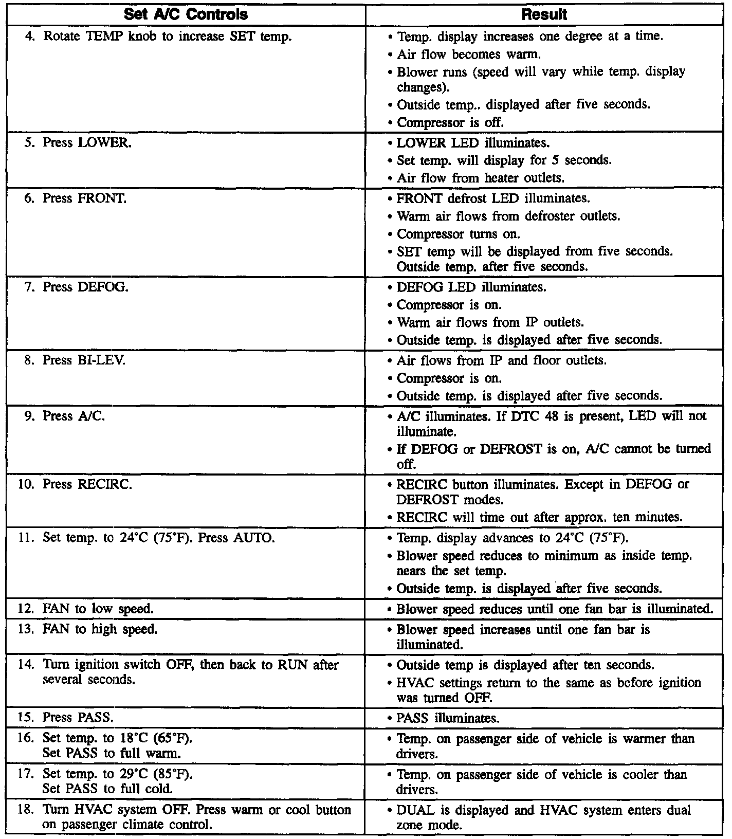 1. If the engine was recently running, a purge delay of approximately 20 seconds may be encountered before a selected mode is activated. This delay is normal and is designed to prevent windshield fogging.