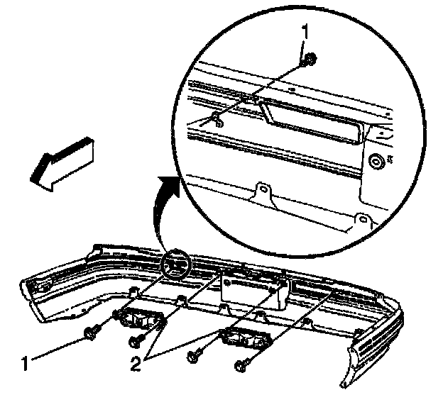 2. Remove the nuts (1) that retain the backup lamp (2).