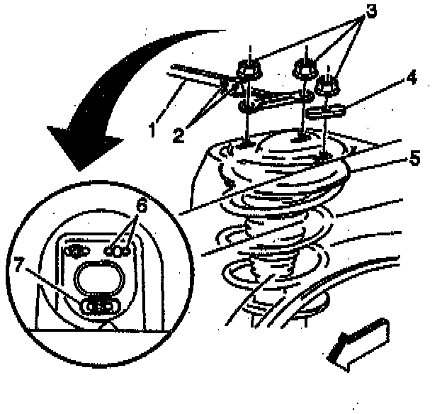 2. Remove the remaining top strut nuts and the washers (4 & 7).