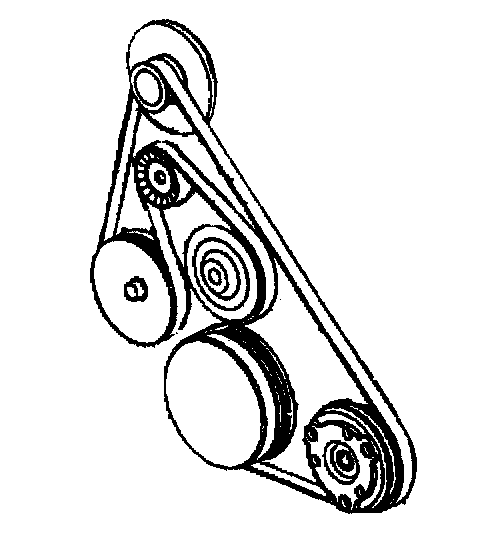 REMOVAL PROCEDUREThe accessory drive belt controls all engine-mounted accessories. All driven accessories rigidly mount to the engine. A spring-loaded belt tensioner maintains the drive belt tension. A belt squeak, occurring when starting or stopping the engine, it has not effect on belt durability. The drive belt tensioner can control the belt tension over a broad range of belt length. However, there are limits to the tensioner's compensation ability. When using the tensioner outside of its operating range, poor tension control and/or damage to the tensioner may occur.