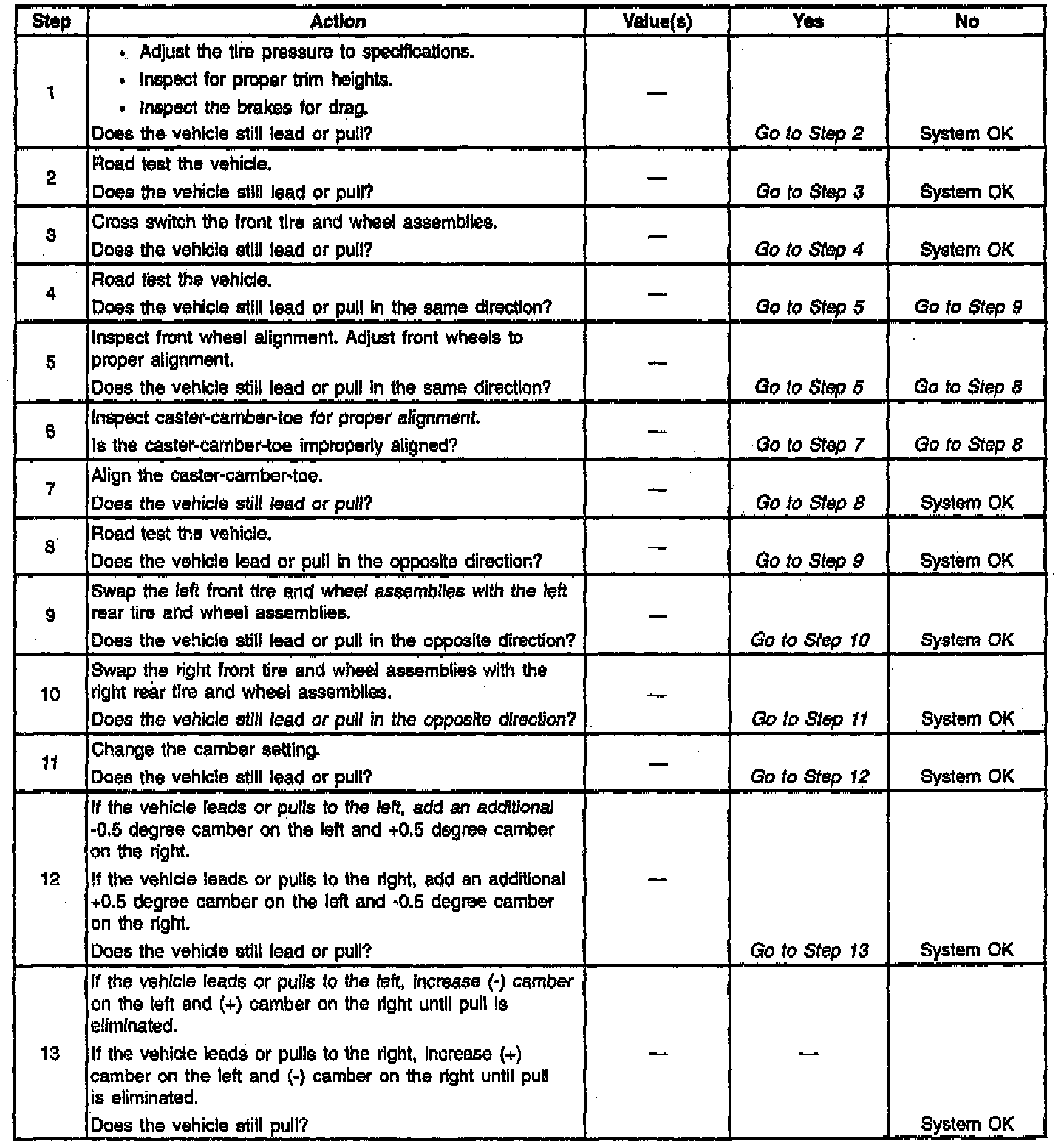 Radial Tire Lead/Pull Correction: