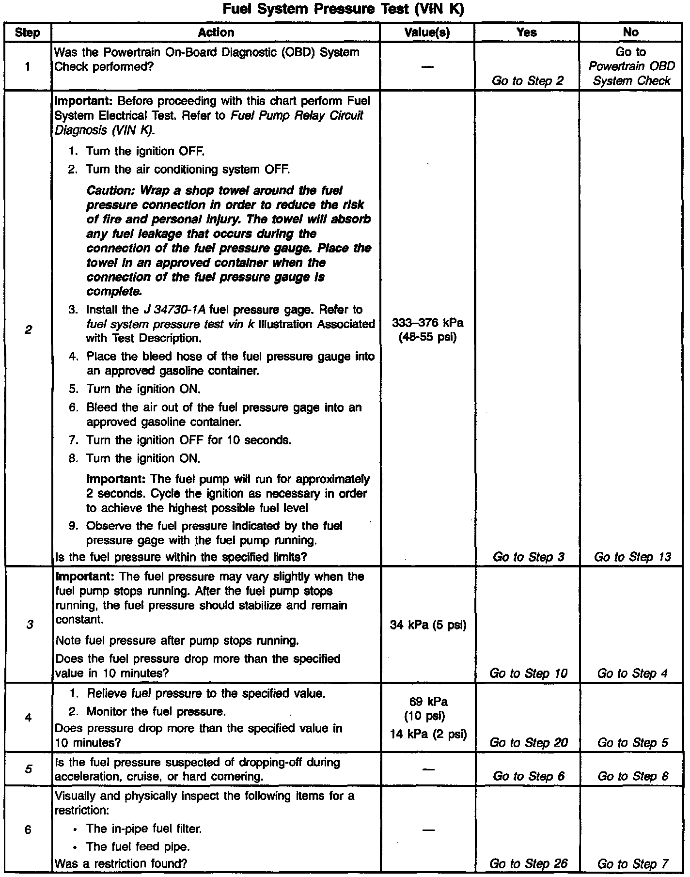 System Diagnosis - Fuel System Pressure Test