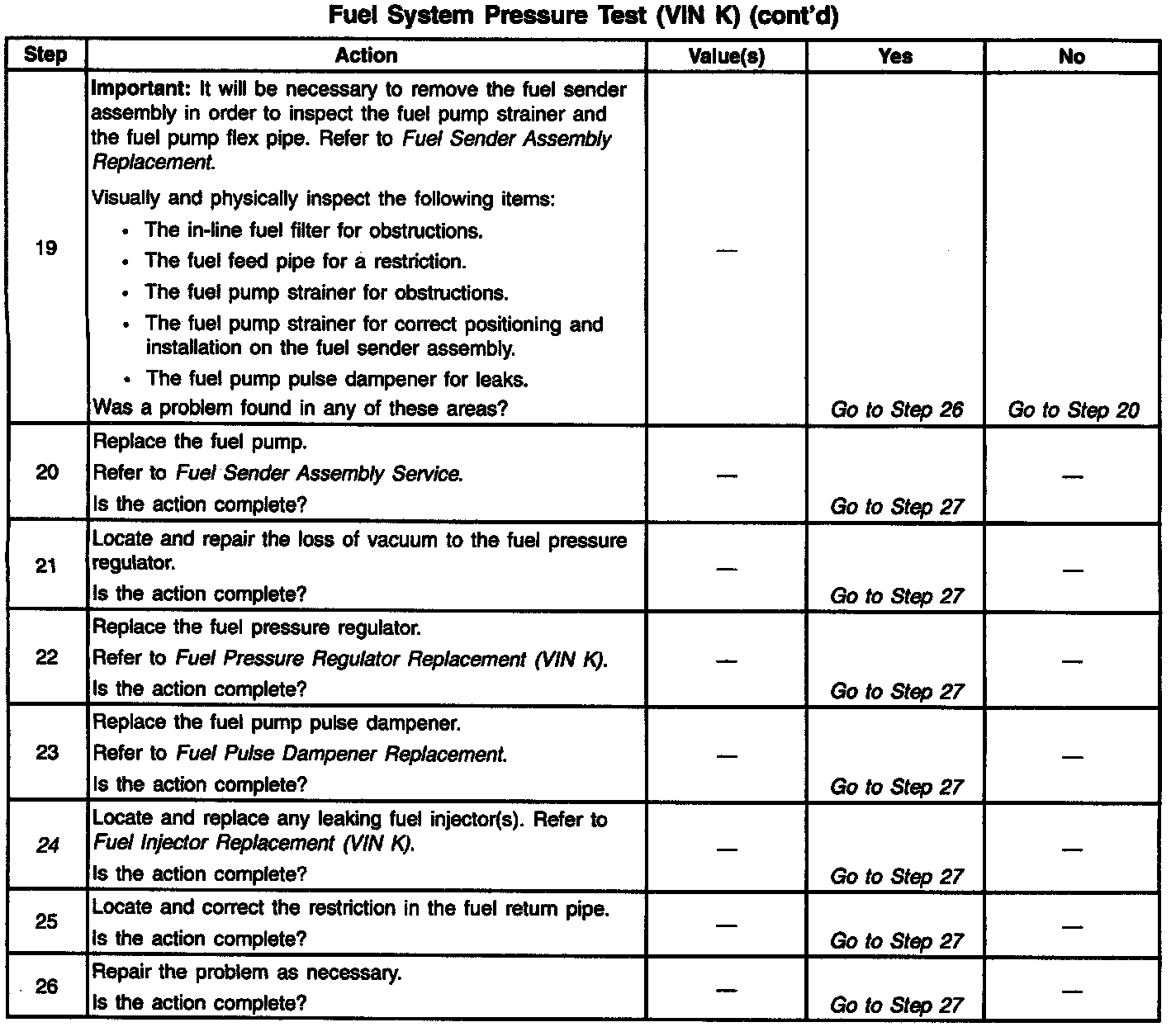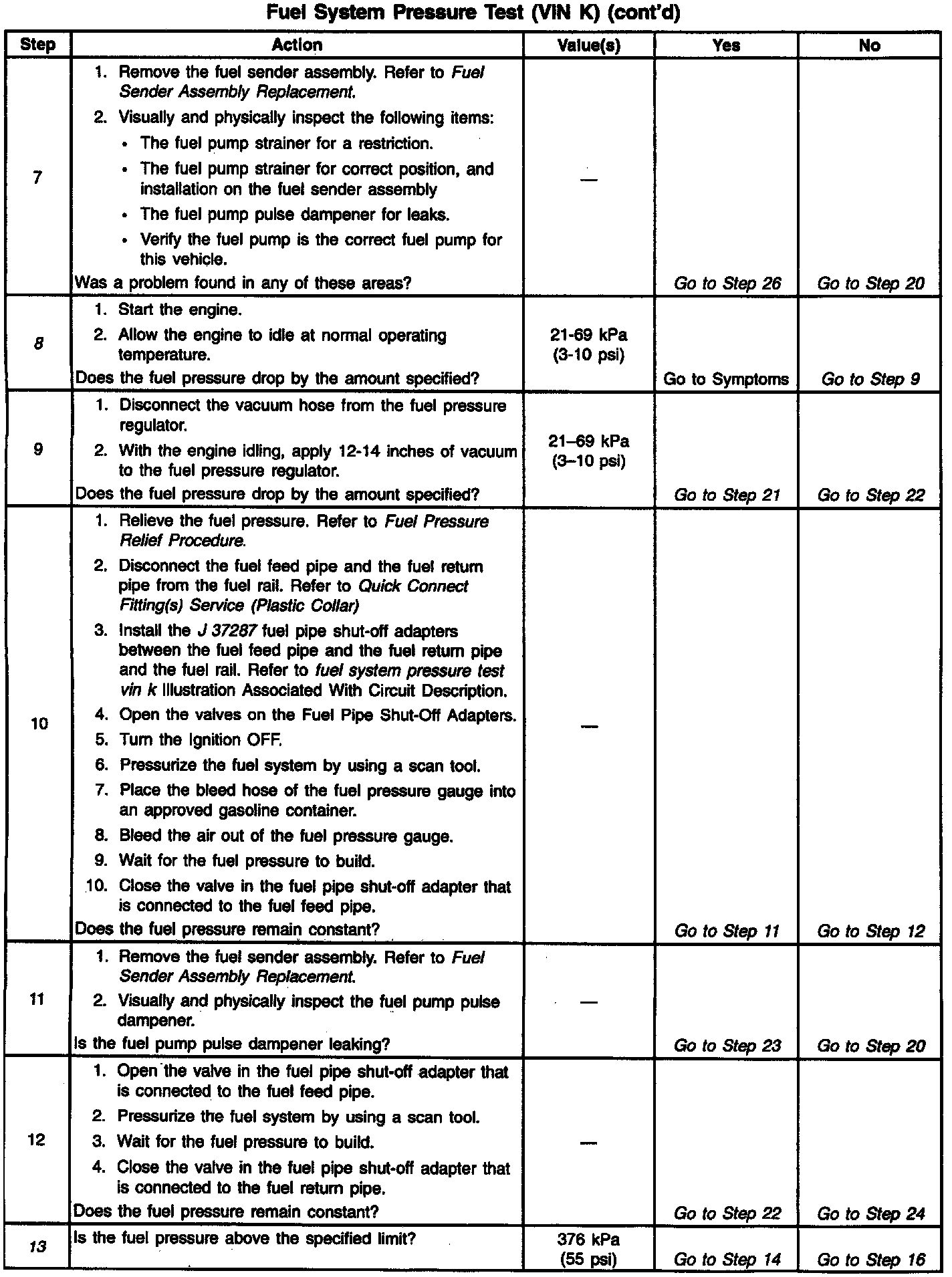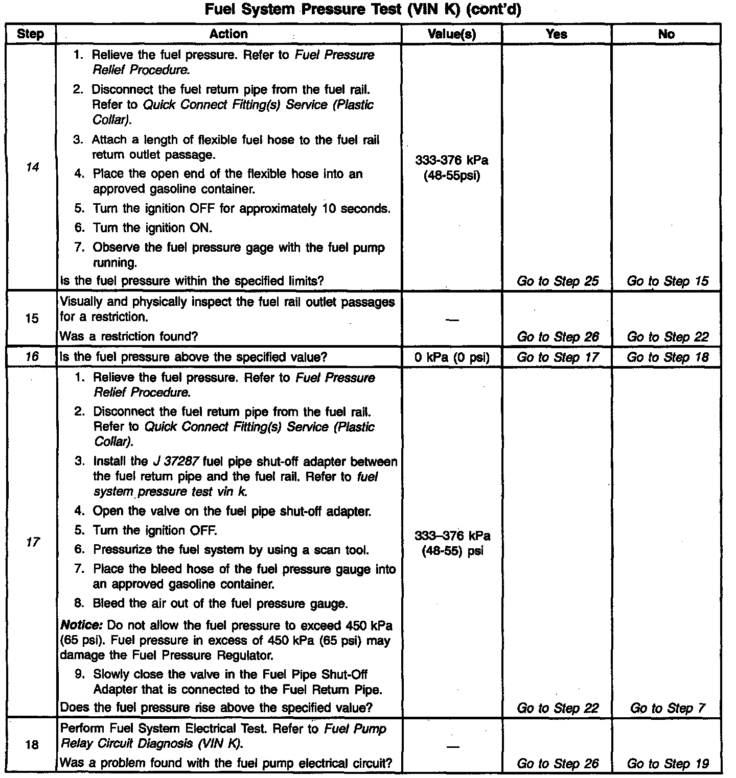 14. This test determines if the high fuel pressure is due to a restricted fuel return pipe or if the high fuel pressure is due to a faulty fuel pressure regulator.