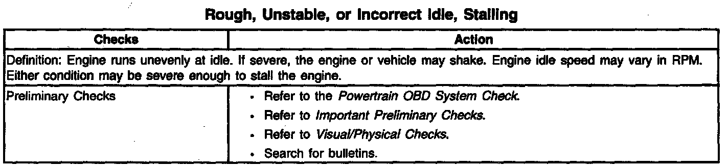 Rough, Unstable, or Incorrect Idle, Stalling