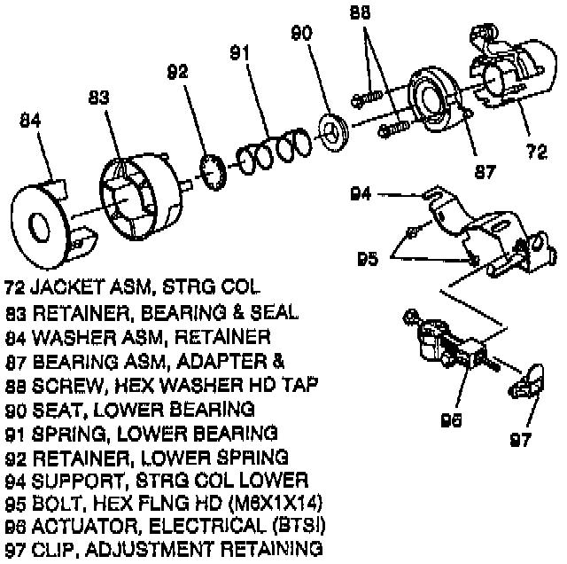 3. Steering column lower support (94) with two hexagon head bolts (95).
