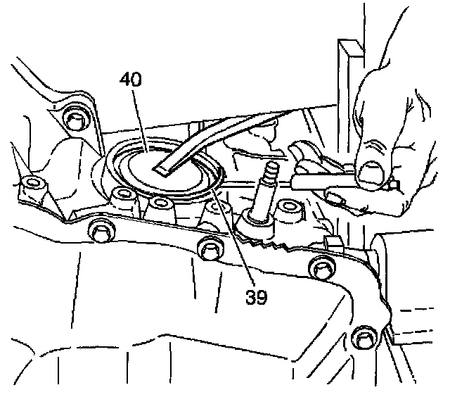 6. Depress the reverse servo cover (40), grasp one end of the cut seal (41) and pull the seal (41) out of the servo cover (40).